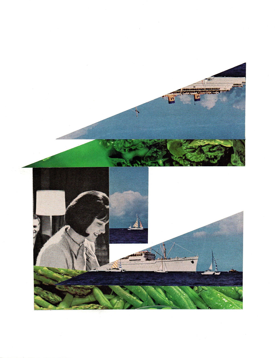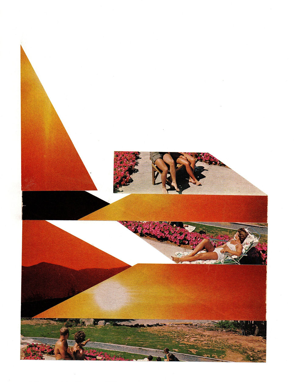 During Covid, when no one was traveling, Farrell was lucky enough to find a stack of travel and lifestyle magazines from the 1960s. ‘Sunset Magazine’ from 1965 offered a way to not only travel the world but in time as well. The designs, photography and advertisements from the 1960s’ encapsulated a nostalgic sense of well-being, good times and better days. Farrell went to work cutting up the magazines and began collaging. He used everything; the colour banners, the photographs, the advertisements and even the recipes. What he created is a suite of collages that instill all the grooviness, optimism and wonder of the 1960’s paired with Farrell’s indelible sense of colour and pattern.